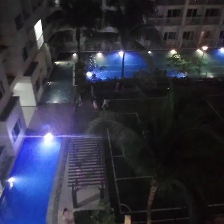 ベッドルーム1室のShore Residences マニラ市から徒歩で5分離れたル・パヴィヨン・メトロポリタンパークなどの市内のさまざまな観光スポットに行きやすいです。 アパートにはプールの景色を望むテラスがあります。
